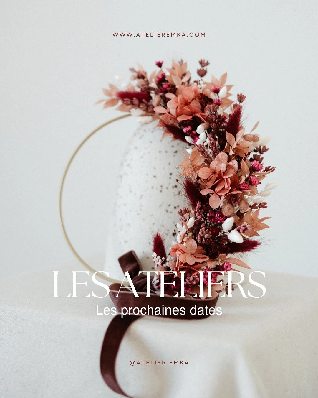 Emka est un atelier où se rencontrent fleurs séchées, herbes folles et graminées. Une ôde à la nature, à sa beauté et à ses trésors cachés. Couronnes, bouquets, accessoires ou décors singuliers, chacune des créations est confectionnée à la main, au coeur de Grenoble.